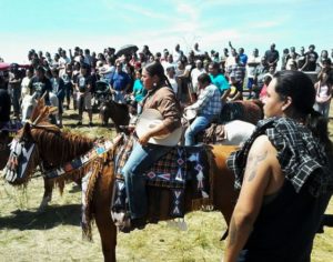 Oil company security forces and law enforcement personnel treated both males and females, young and old, the quiet and the vociferous as if they were all rabid wolves: throwing individuals to the ground, yelling in the faces of all who came near, locking some up in dog cages and writing numbers on their arms, using water guns on the crowd in sub-freezing temperatures, setting up road blocks so food and supplies could not get through (ACLU, Jennifer Cook, September 13, 2016).